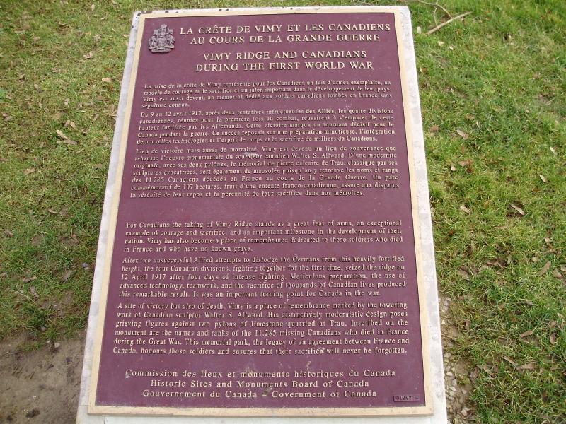 Des photos du mémorial de Vimy(52) . Sur les 66 000 soldats du corps expéditionnaire canadien, 11 285 ont été portés disparus( L'éclatante victoire canadienne à la bataille de Vimy est un événement fondateur de la Nation canadienne). Ainsi que le monument dédié à la division marocaine. Avant que les Canadiens n’enlèvent la crête , en avril 1917. Les zouaves, les tirailleurs marocains,des volontaires de la Légion étrangère venus de 52 pays l'avaient prise mais faute de renforts avaient dû la laisser.