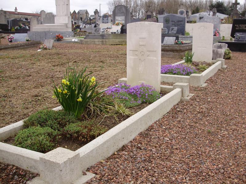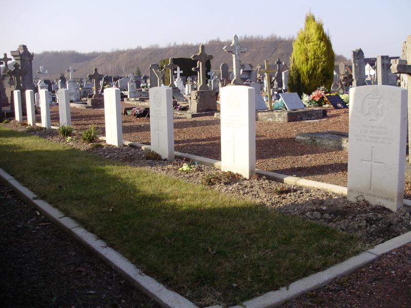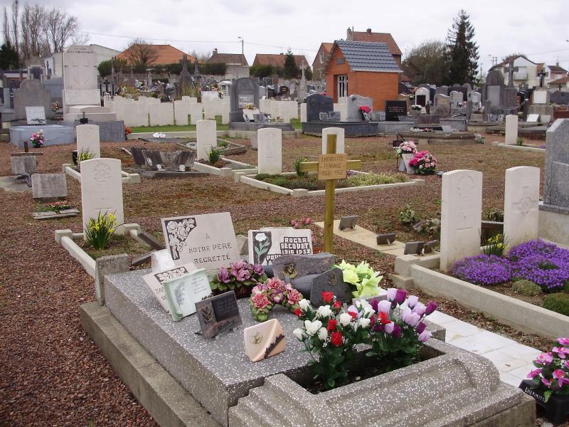 Des photos du cimetière communal d'Aix Noulette (62) et de son extension. Dans le cimetière communal, on trouve cinq tombes de soldats britanniques.