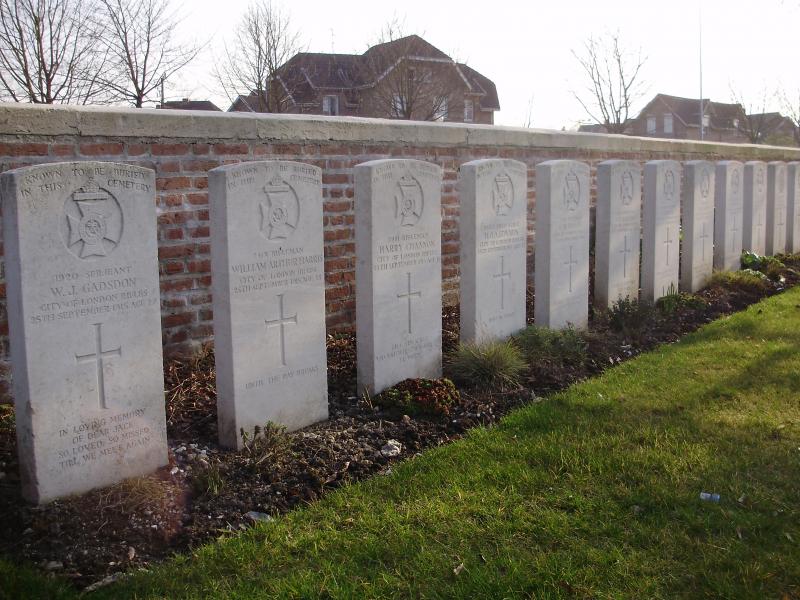 Des photos du cimetière communal de Beuvry(62) où se trouvent 69 tombes isolées( dont un soldat non identifié) du commonwealth dont un non identifié.