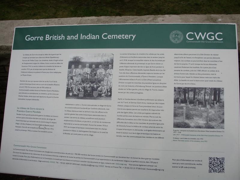 Veuillez recevoir les photos du Gorre Indian and British cemetery de Beuvry(62) qui contient 938 tombes dont 830 anglais, 1 australiens, 2 sud-africains, 8 allemands, 96 hindous et un français.