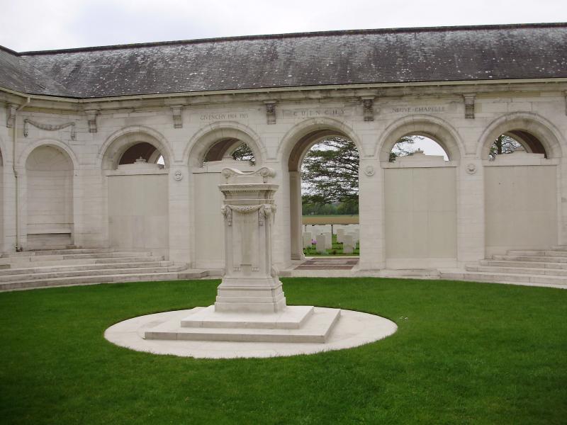 Voici le mémorial de Richebourg dans, désormais, les Hauts de France. Il rend hommage aux 13 482 soldats du Commonwealth dont les corps n'ont pas été retrouvés. Et ce durant les batailles de, La Bassée, Festubert 1914, Givenchy1914/1915, Cuinchy, Neuve-Chapelle, Aubers et Festubert 1915. Un cimetière contenant 915 soldats y est accolé et dans lequel on dénombre 891 britanniques, 11 canadiens, 9 hindous, 4 allemands.