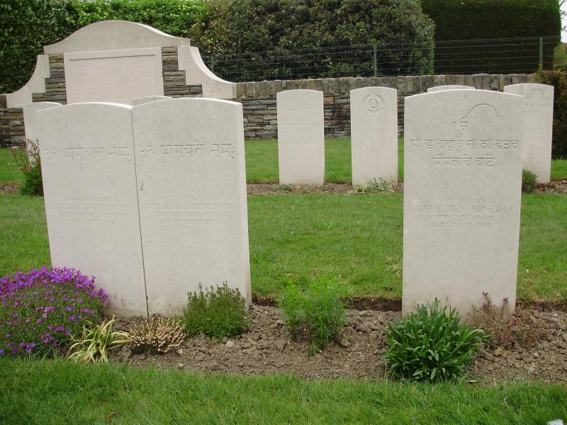 Je vous présente le Zelobes military cemetery de La Couture (62). Il contient 100 sépultures de soldats hindous et sikhs dont un quart sont inconnus et qui sont normalement incinérés. Ils ont été enterrés pour les honorer et leurs noms gravés dans la pierre.