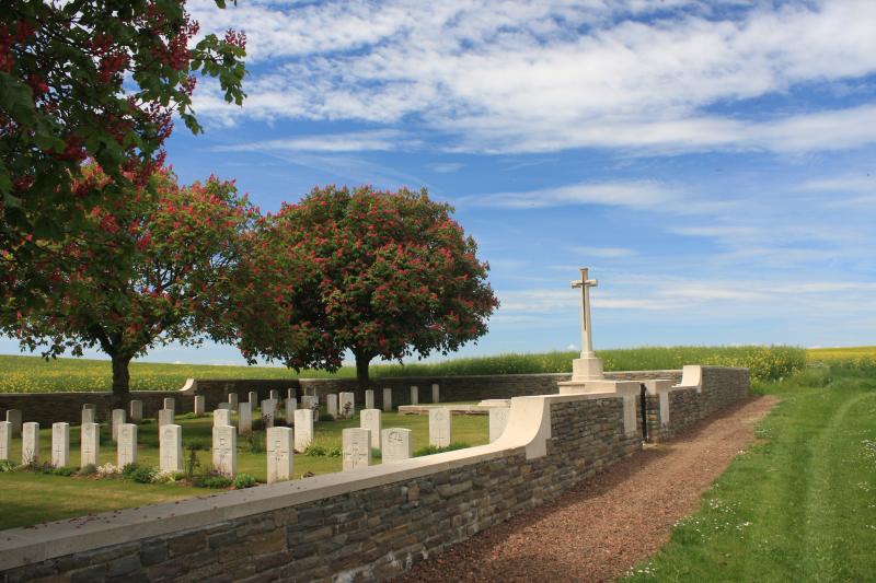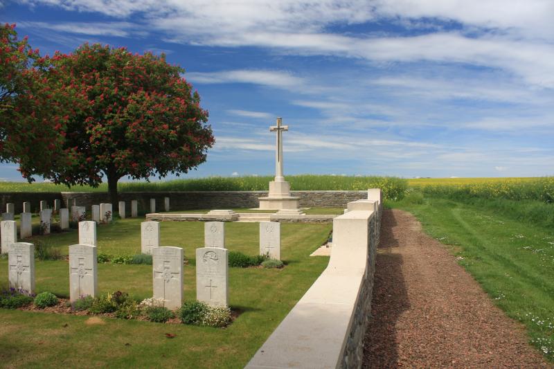 quelques photos du cimetière britannique de mesnil ridge (somme,80) situé au milieu des champs tout près du parc historique de beaumont hamel.cordialement