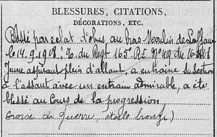 Bonsoir tout le monde ! Une fiche peu remplie malheureusement pour ce brave 3 lignes en rouge comportant des erreurs ou incompréhension J'ai essayé de trouver le journal de marche du régiment pour en savoir un peu plus sur les dites blessures mais je suis un peu perdue avec ce 2ème régiment d'artill...