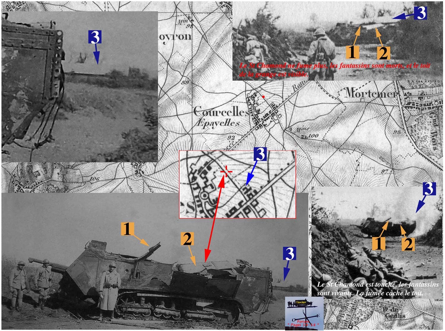 L'heure de prise de vue est assez précise car l'heure à laquelle le char a été touché est donnée dans les rapports du Groupe de St Chamond engagé sur Courcelles.