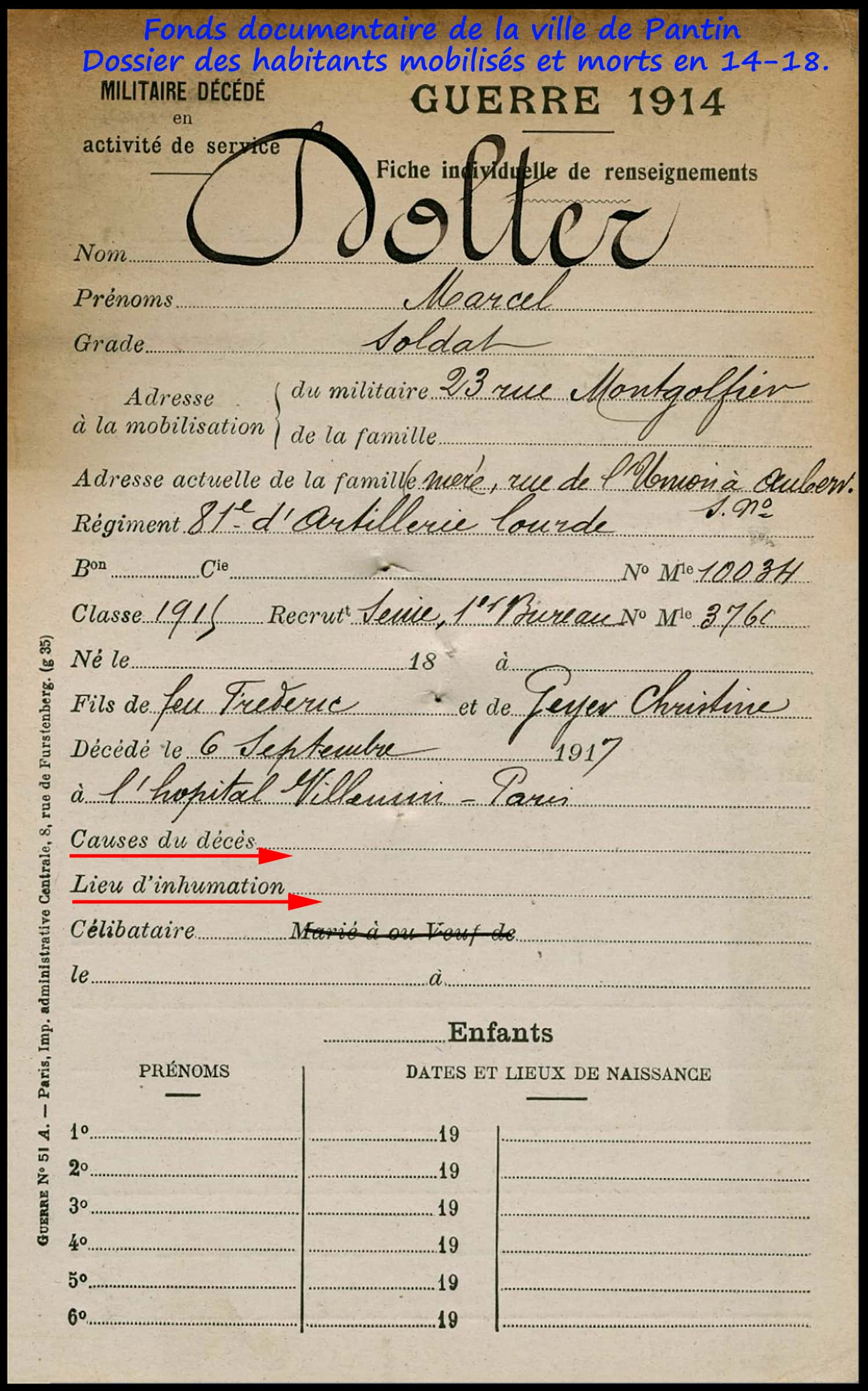 dans le dossier des habitants de Pantin tués en 14-18, le canonnier Dolter semblait alors bien être