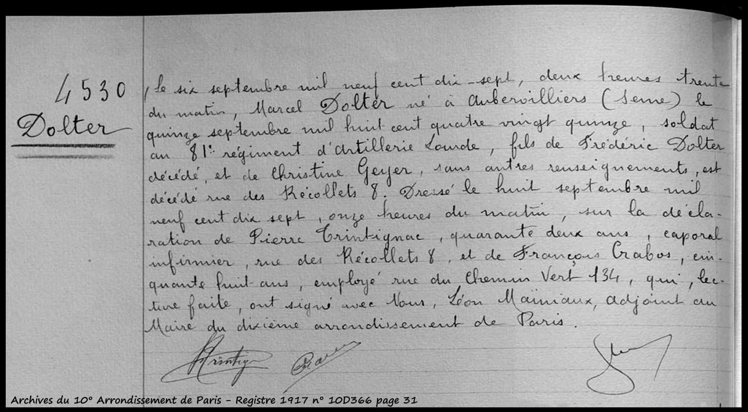 AD Paris, Décès 1917, acte n°4530, Paris, 10e Arrondissement, 06/09/1917