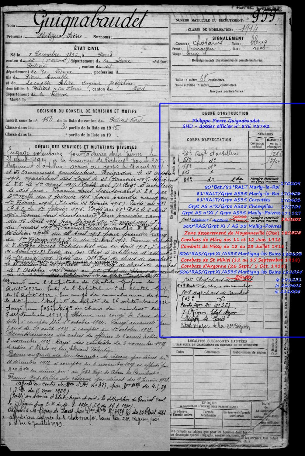 Et; au Service Historique de la Défense, le dossier officier de Philippe Pierre Guignabaudet