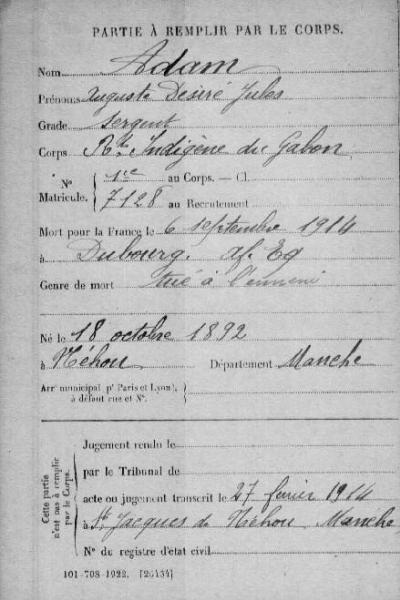 Le sergent Auguste ADAM.