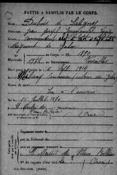Le commandant chef de bataillon Jean Joseph Emmanuel Louis Philippe Alphonse DUBOIS de SALIGNY, qui avait écrit en 1913 un "Essais sur la guerre russo-japonaise" alors qu’il était capitaine. Inscrit sur la liste des "Écrivains morts au Champ d'honneur", gravée au Panthéon.