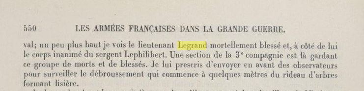 Effectivement je n'ai pas trouvé de trace de ce lieutenant LEGRAND sur le Mémorial informatisé de la Saint-Cyrienne. Par contre il figure bien sur le "Livre d'or des Saint-Cyriens morts au champ d'honneur" (166 pages - édité en 1990) : "LEGRAND; Lieutenant. Cameroun allemand" parmi les morts de la "Promotion de Fez 1909-1912. Si mes souvenirs sont bons c'était aussi la promo du futur maréchal Juin (major de promo), du général Béthouart et du général de Gaulle.