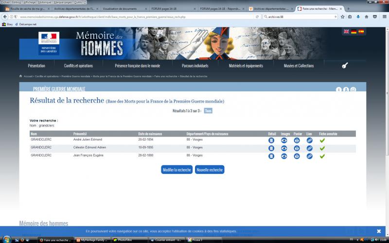 mais j'avais cherché sur site "Mémoire des hommes" en tapant Grandclerc et n'avais obtenu que 3 réponses qui ne correspondaient pas
