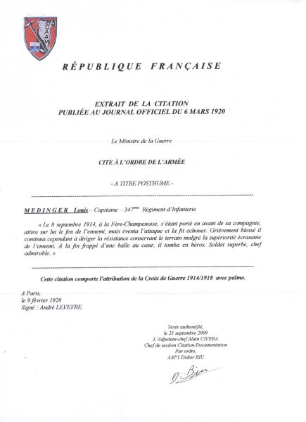 Toutes les citations Homologuées de 1914 a nos jours,y sont conservées.