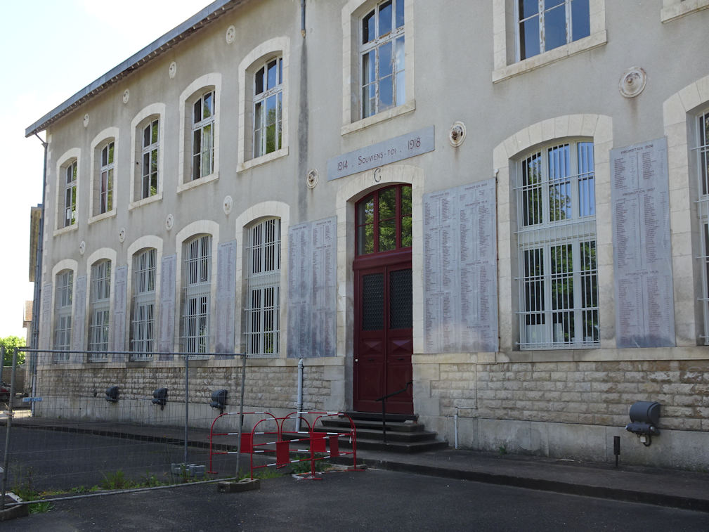 Saint Maixent l'Ecole, la façade du musée avec les différentes plaques contenant les noms des officiers de réserve formés dans cette institution et tués pendant le conflit.