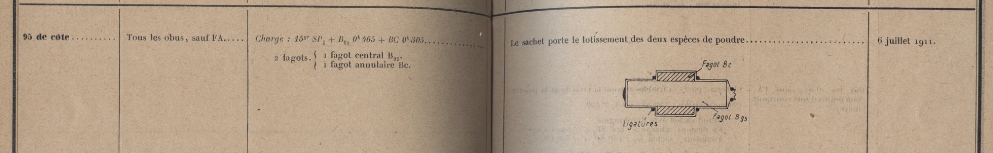 J'avais oublié de préciser que le schéma de la "gargousse rigide du 95 de côte" montre uniquement le mode de confection des fagots de poudre réalisée dans les ateliers des Parcs. L'ajout du sachet en étoffe donne la forme générale définitive de la gargousse.