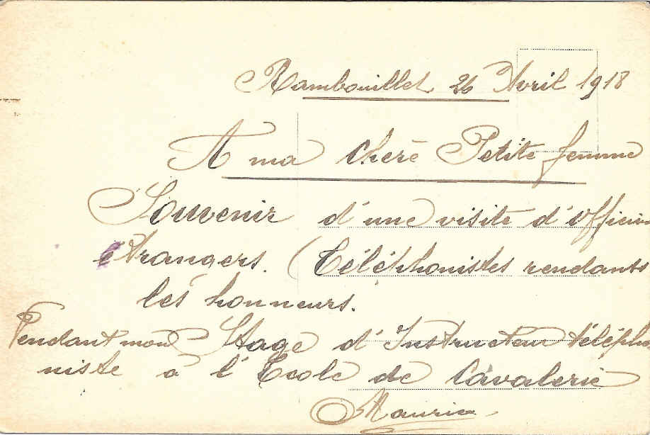 Sur Delcampe il y a 4 photos datant d'octobre et novembre 1918 en inscrivant "RAMBOUILLET école de cavalerie".