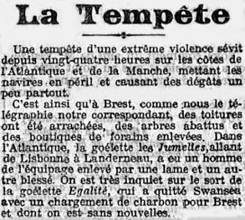 Bâtiment présumé perdu corps et biens dans la traversée de Swansea (Pays de Galles, Royaume-Uni) à Brest avec un chargement de charbon.