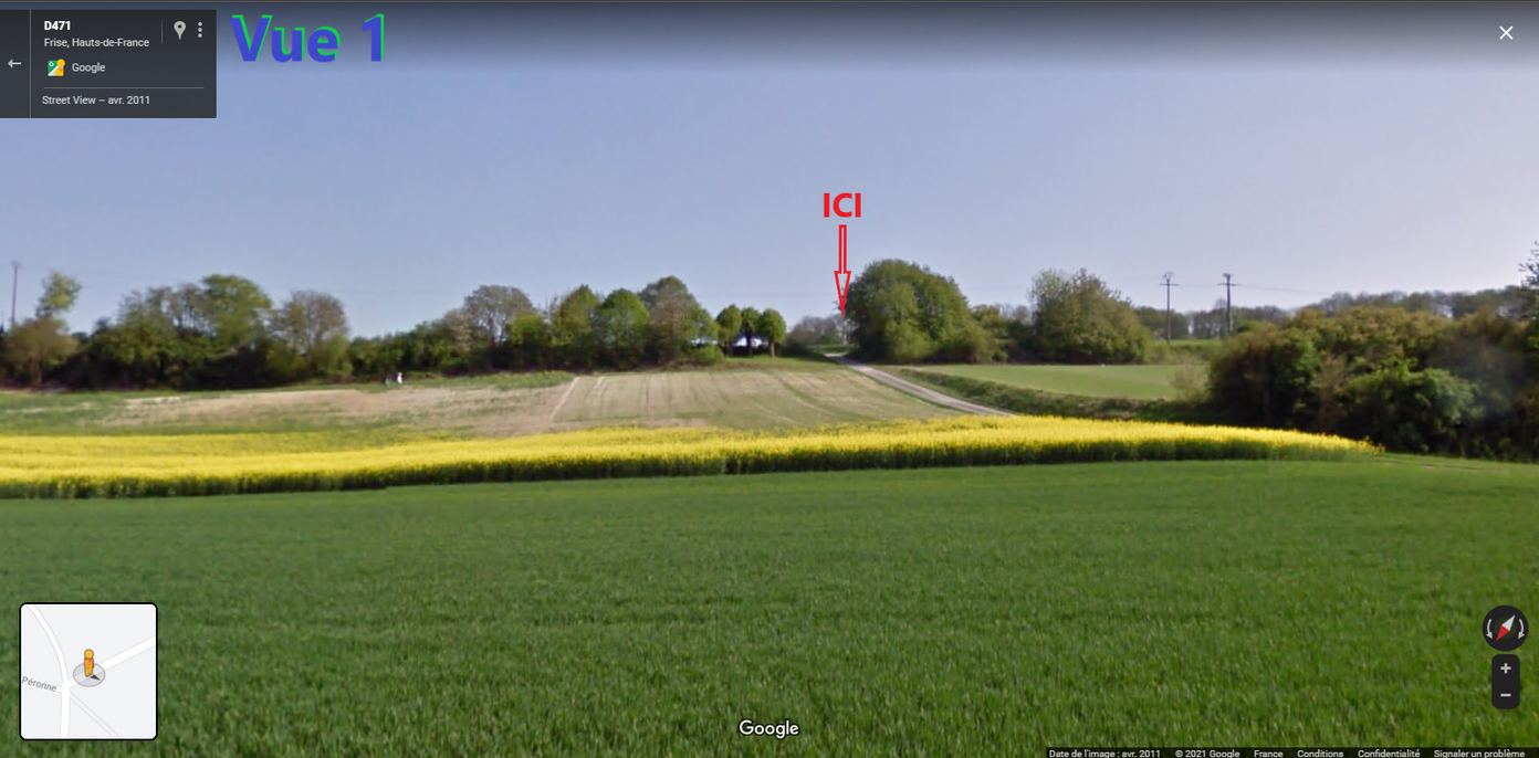 1/ Dans la montée, 50 mètres après le Calvaire, sur la droite, dans la direction d'Herbécourt, voici le panorama. On trouve bien une grande étendue en pente déchaumée pour le moment avec une légère dépression effectivement.
