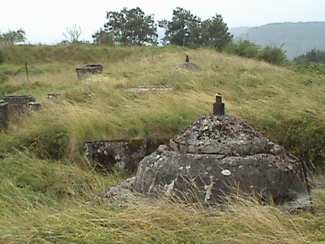 on remarque l'embase en béton pour le canon de 75, les niches à munitions et l'entrée de l'abri enterré.