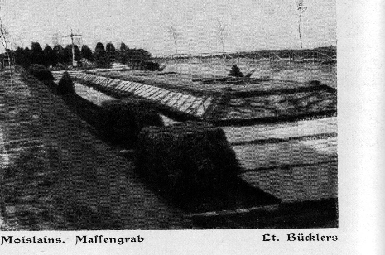 On trouve par ailleurs des faits similaires dans la région au 28 aout 1914 avec des pertes importantes au 307e et 308e d'infanterie, dits "les Charentais", à proximité de Moislains (Somme). A ceci près que ce ce sont les habitants de ce village qui ont été contraints sous le menace d'ériger ce cimetière. Le cimetière existe toujours quoique de nombreux corps ont été "rapatriés" vers les Charentes.