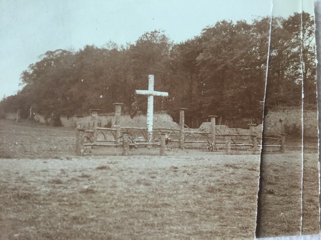Bonsoir, Merci pour toutes ces informations fort précieuses. Voici les clichés de la tombe de Sailly Saillisel. La carte postale comporte un tampon de la poste date du 20 décembre 1915. Son cliché est antérieur à celui de la photo, car le mur en second plan est encore intact. Dans la mention manuscrite au dos de la photo, je crois lire Schloss, donc château en français. Je ne suis pas en mesure de traduire le reste, ne parlant pas allemand. Bien à vous. Bruno