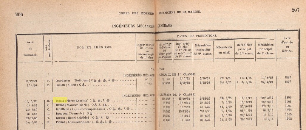 Dans un message en date du 8 février 2015, « memgam » explique que l'Amiral Pierre Evariste Mouly est passé du corps des mariniers au corps des officiers mécaniciens.