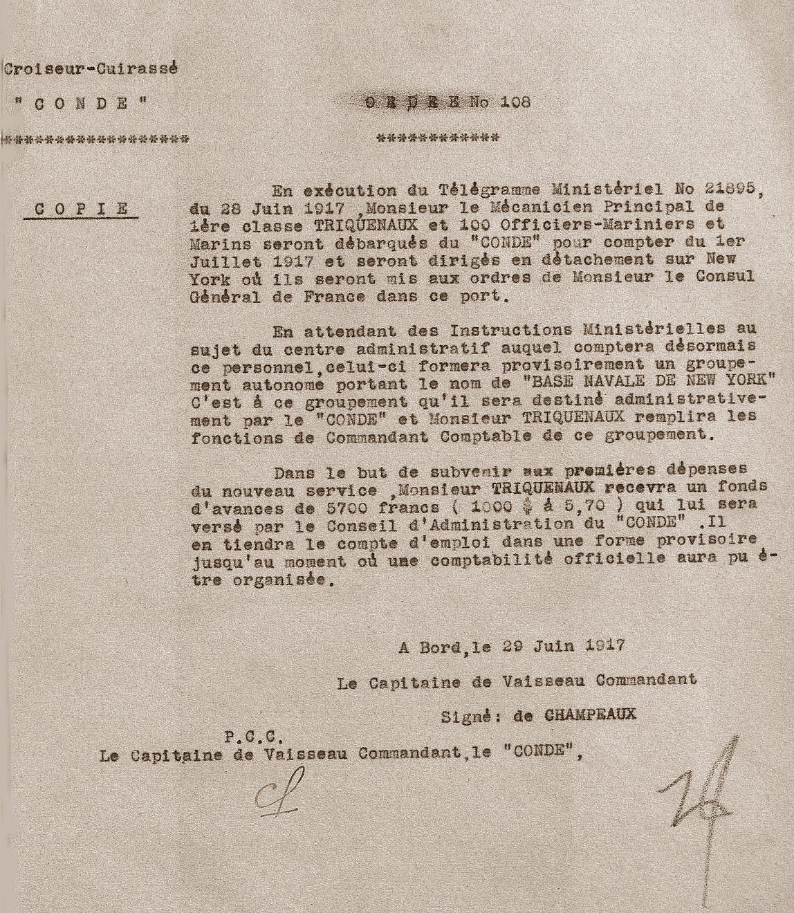 Croiseur cuirassé Condé  – Ordre n° 108 – 1 –  .JPG