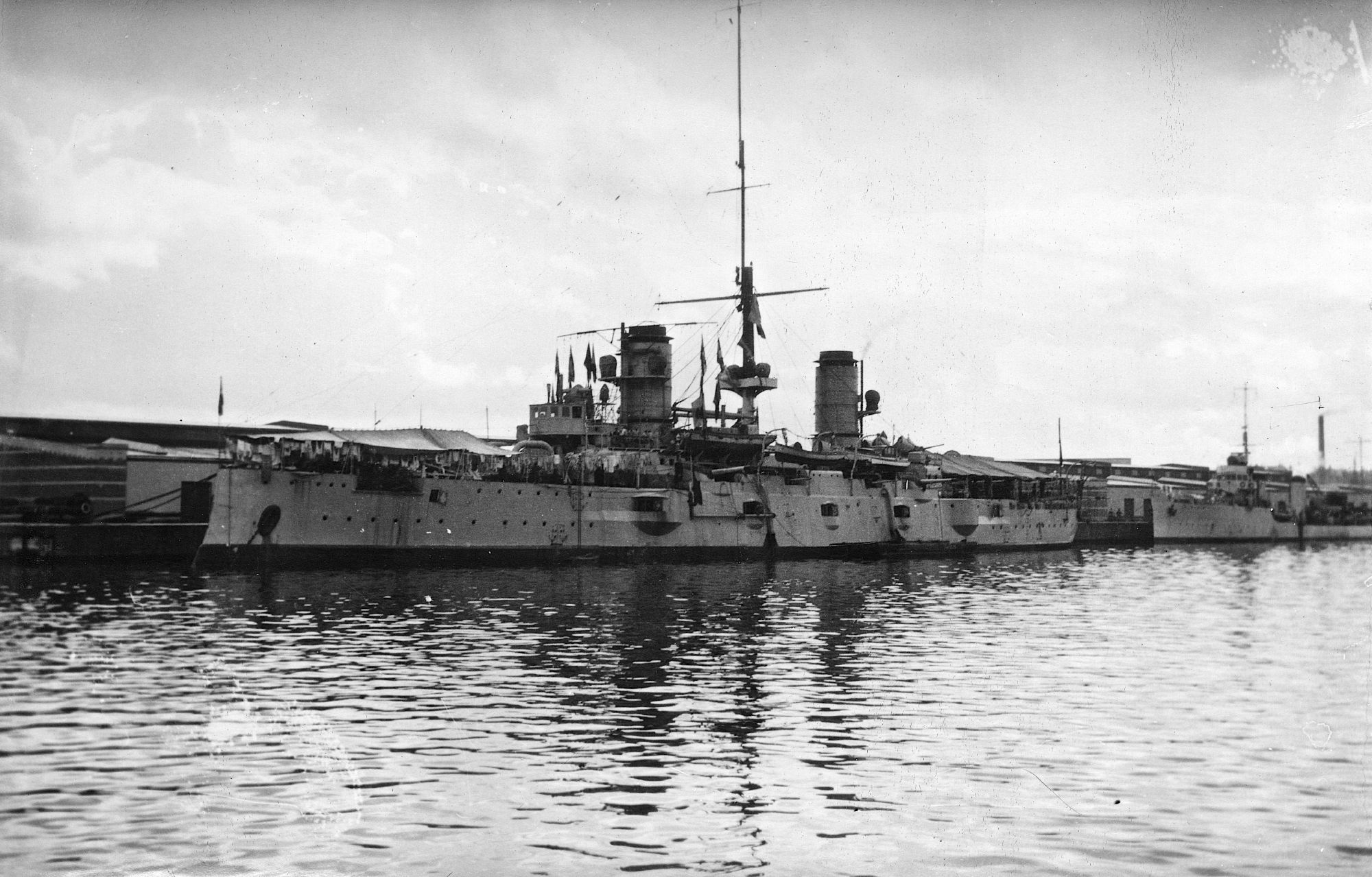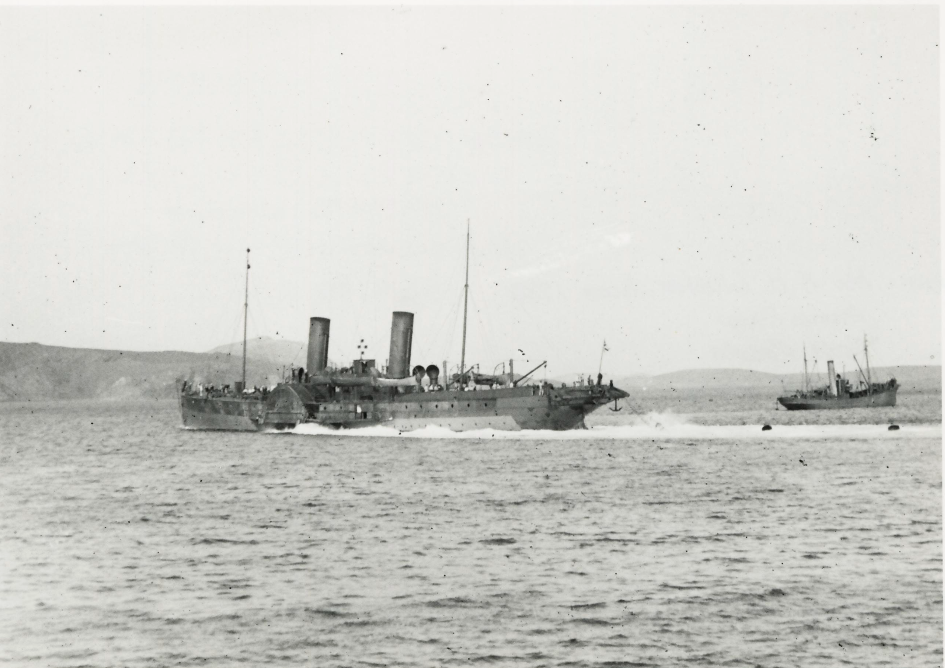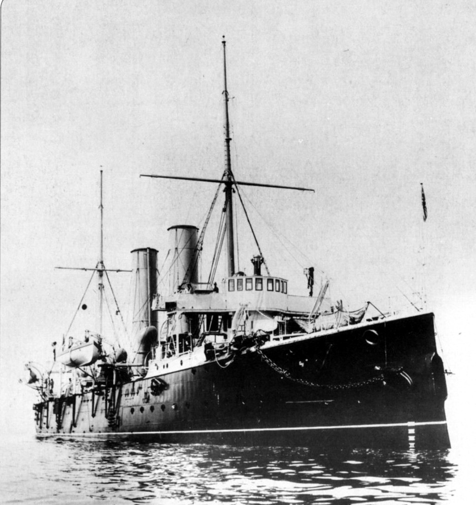 Le Latona est un petit croiseur de 3500 t de la classe Apollo datant de 1893 aménagé en mouilleur de mines.