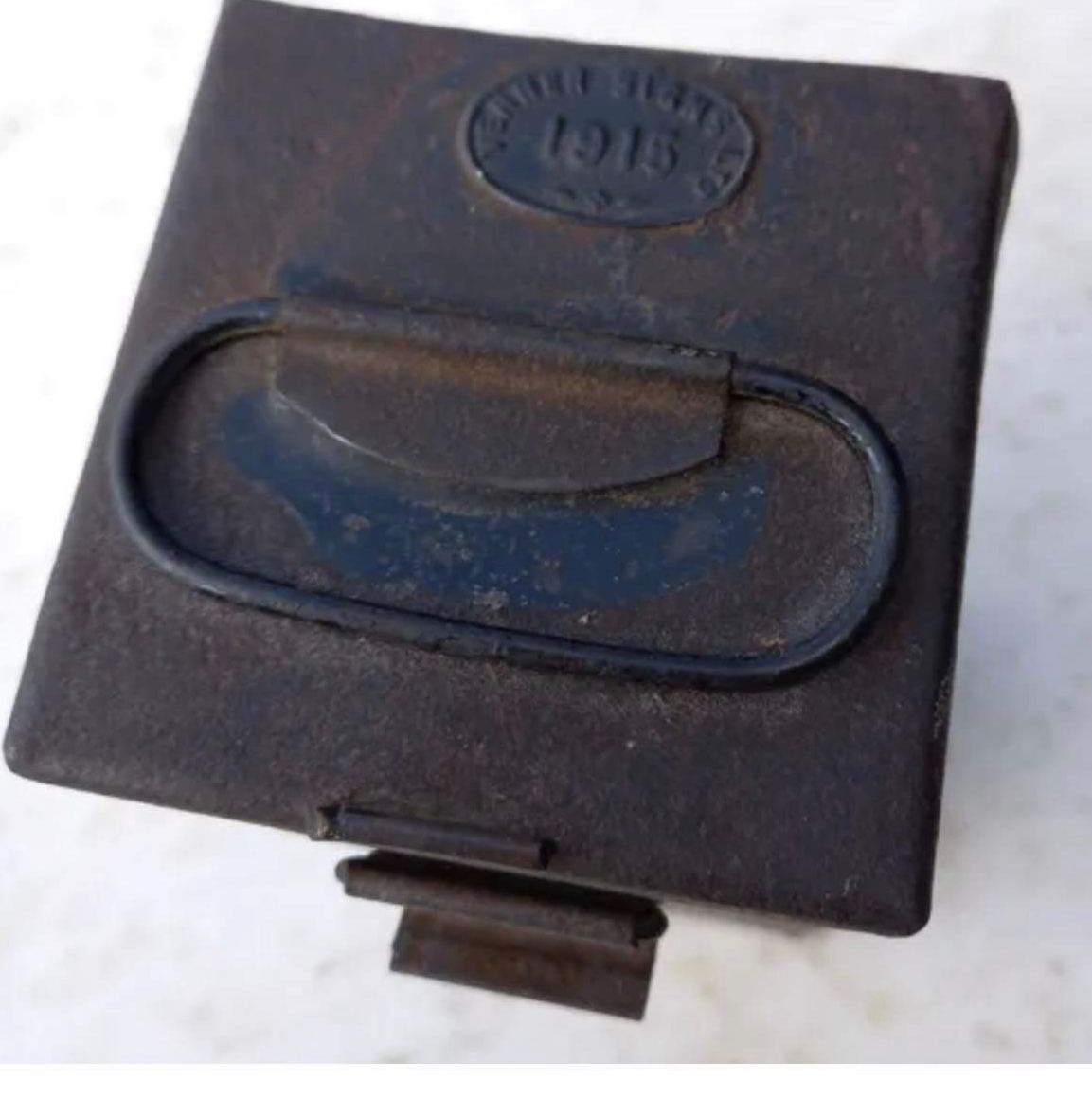 Je pense qu’elle était utilisée pour le transport de pièces de rechange ou pour un kit de nettoyage pour mitrailleuse Vickers Lewis ou elle faisait partie des équipements intérieurs au sein des automitrailleuses anglaises ww1.