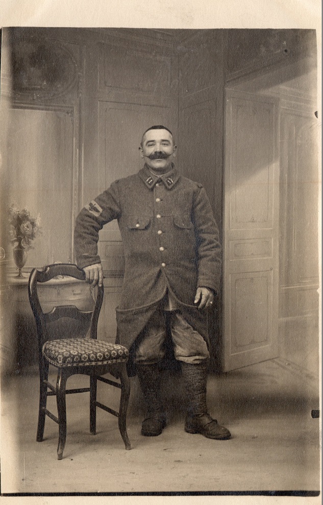 Quel est cet insigne de spécialité, comprenant une ancre avec deux ailes, présent sur la manche de ce Poilu?