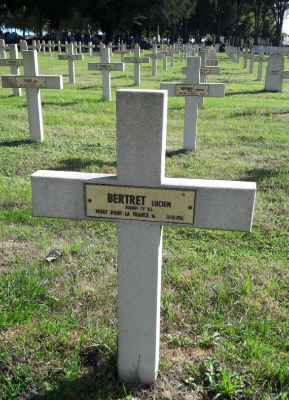 BERTRET Lucien Auguste Aristide, soldat au 72ème RI, dcd le 13/10/1916, tombe 152