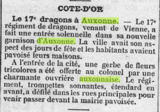 J'ai trouvé des infos dans la presse locale :Scolari a écrit :1. à quelle date exactement arrive le 17e RD à Auxonne ? en octobre 1913 ou avril 1914 ?