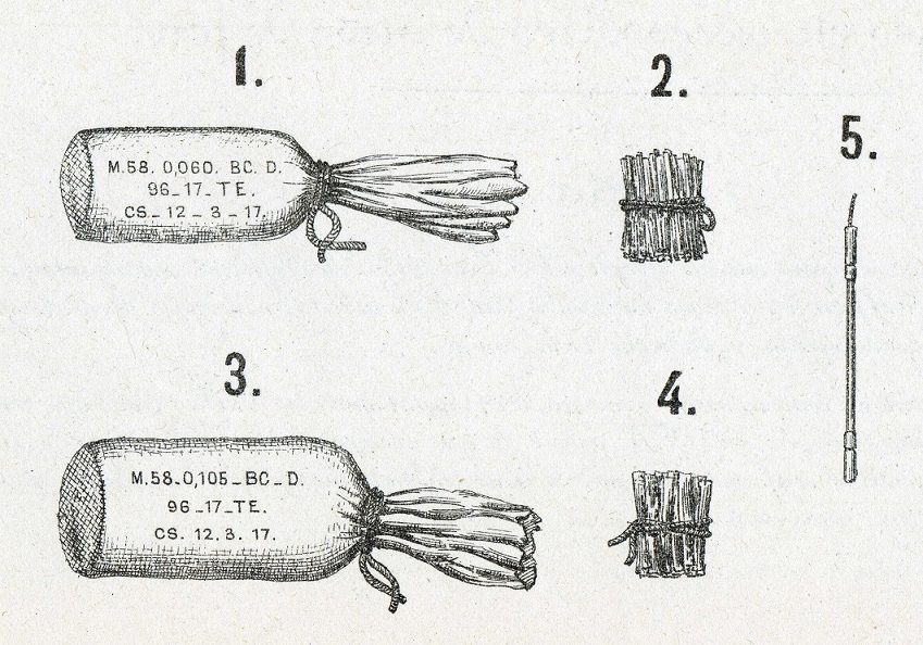 (schémas de la Note sur les munitions d'artillerie de tranchée du 27 mai 1917-Ministère de l'armement).