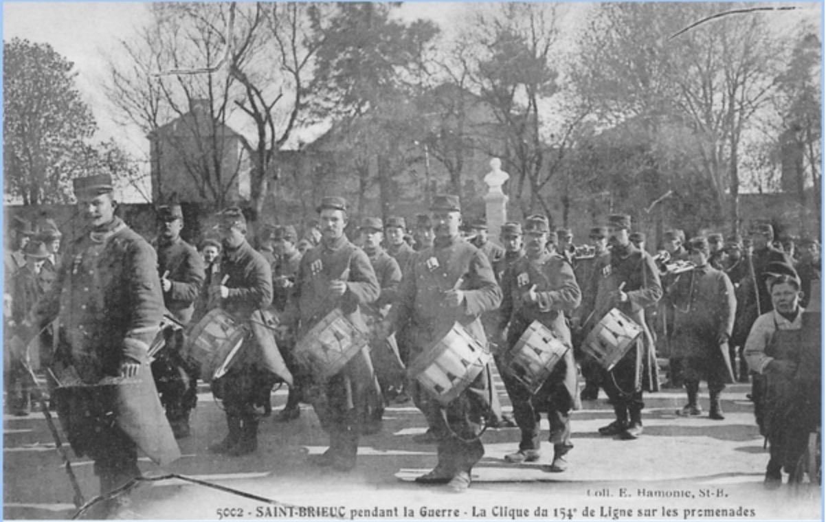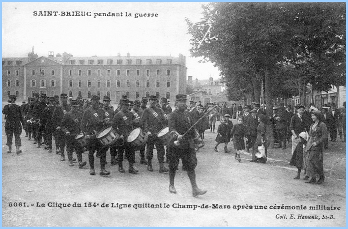Le 154° Ri avait quitté sa caserne (comme tous les régiments aux frontières) pour monter à la frontière du Luxembourg des le premier jour de la guerre de façon a vider les casernes pour faire de la place aux troupes montant du sud de la France et d'ailleurs. Son dépôt avait été transféré à Pontrieux près St-Brieux.