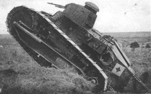 - 1°) Le premier engagement de Renault FT a eu lieu en Mai 1918. Donc pas de char Renault renversé et hors de combat en 1917 !
