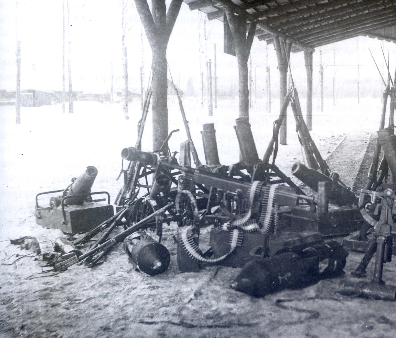 On notera la présence d'un autre mortier d'artillerie de tranchée, le 91.3mm dans sa version russe, copie du 9cm mauser allemand.