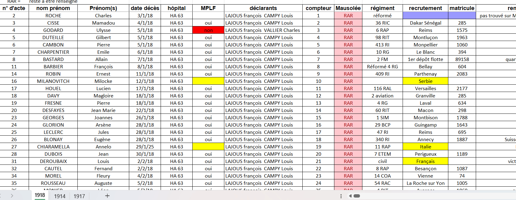 le fichier des identifications des noms réalisé par Chevalier et moi-même pour l'année 1918.