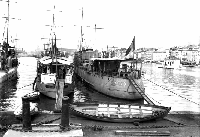 Été 1912 ― Les contre-torpilleurs Chasseur et Dague à quai à Toulon