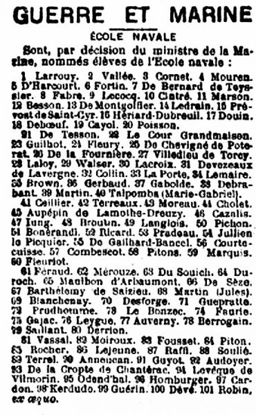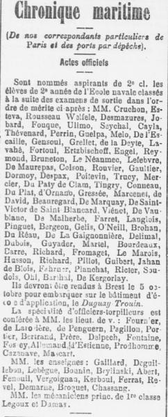 Le Temps, n° 16.147, Lundi 4 septembre 1905, p. 3, en rubrique « Affaires militaires ~ Marine ».