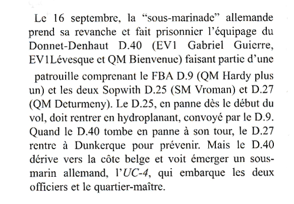 Nous connaissions sous forme d'anecdote sa panne d'hydravion et sa capture par un sous marin allemand qui passait par là (l'hydravion ayant été sabordé comme il se doit). Peut-être que c'est celui-ci : Je pense qu'il y a encore des choses à retrouver dans ma famille : reste à trouver le temps de se plonger dans des archives parfois touffues et des écrits difficilement lisibles.