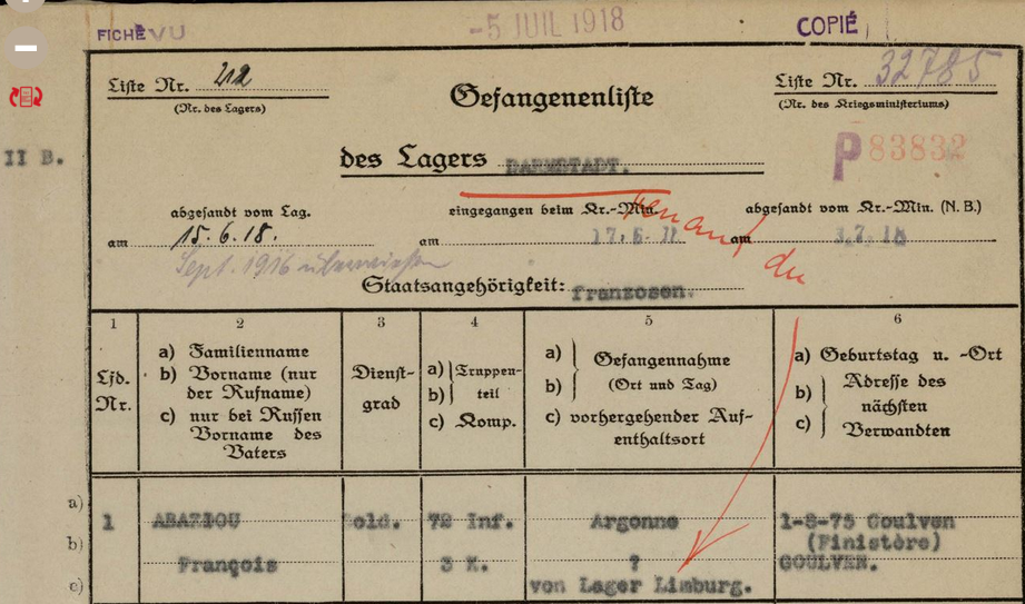 Ce qui est très étonnant c'est qu'il est introuvable dans les archives des prisonniers du CICR...C'est la première fois que je fais chou blanc .