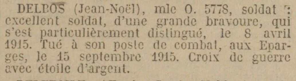 BONNET (Louis-Albert) matricule 6297, caporal : brave caporal. Tombé glorieusement pour la France au cours de l'attaque des positions ennemies. Croix de guerre avec étoile d'argent.