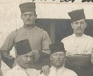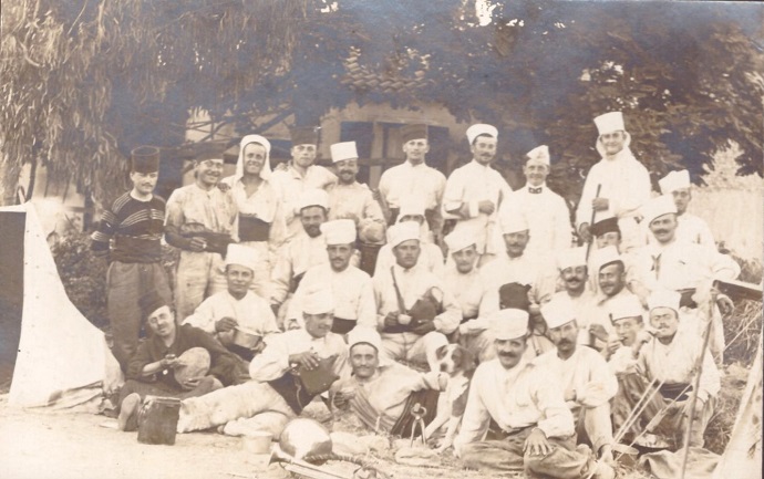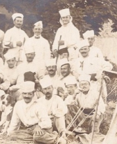 On reconnait l'un d'entre eux, Dernier rang en haut à droite tenant une cravache à la main. Il figure sur l'album photos du régiment (1910/1911) - sous-officier au 5e escadron du 5e RCA à MASCARA.