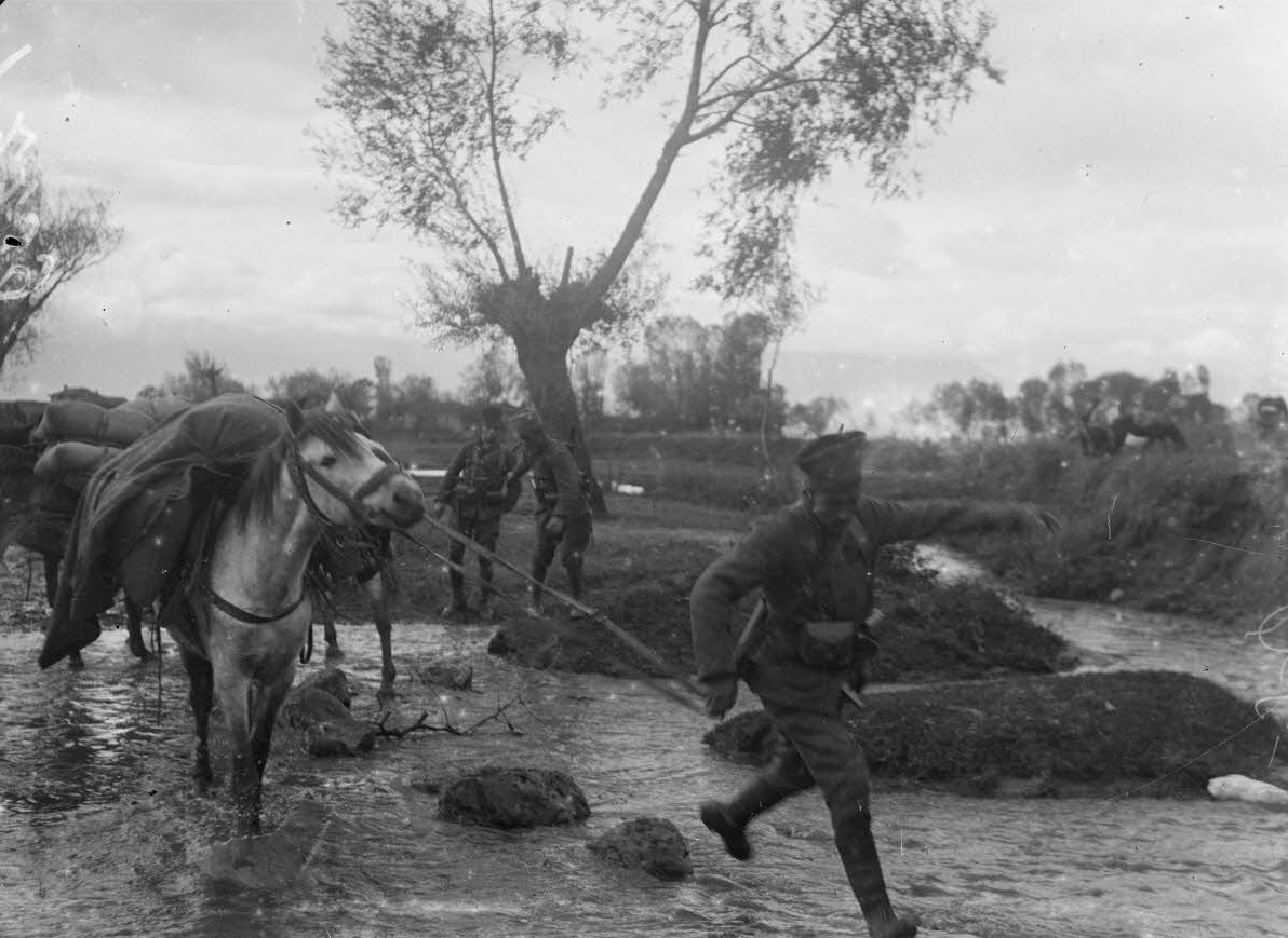 Photo prise en Orient sans plus de précision.- passage d'un gué par des chasseurs d'Afrique.