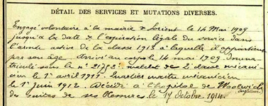 Du 4 octobre 1912 au 7 mars 1914, était affecté à la