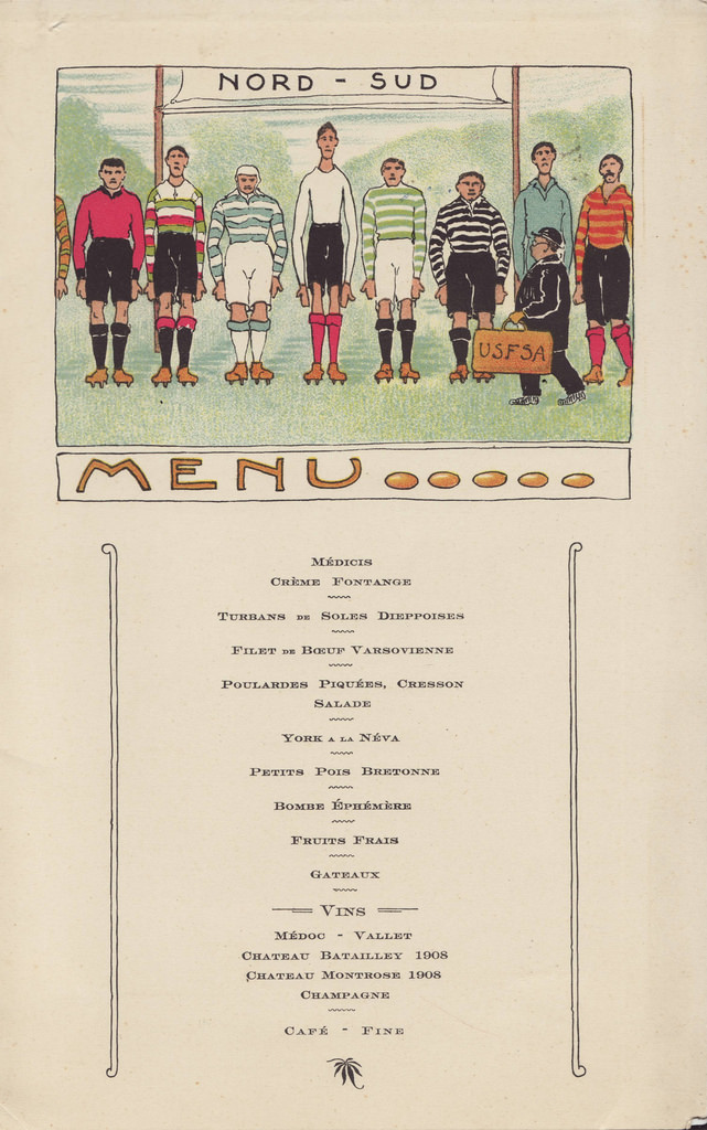 Si le sujet se recentre sur le match Nord Sud de 1912 à Nantes, le collectionneur (moi!) est obligé de partager un de mes "vieux papiers" préféré, à savoir le splendide menu du banquet qui clôturait cette rencontre... en compagnie de tous ces hommes évoqués dans les messages précédents...