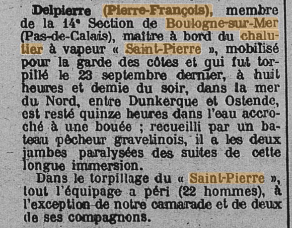 Un article récapitulatif des pertes de navires boulonnais durant la Grande Guerre cite le vapeur