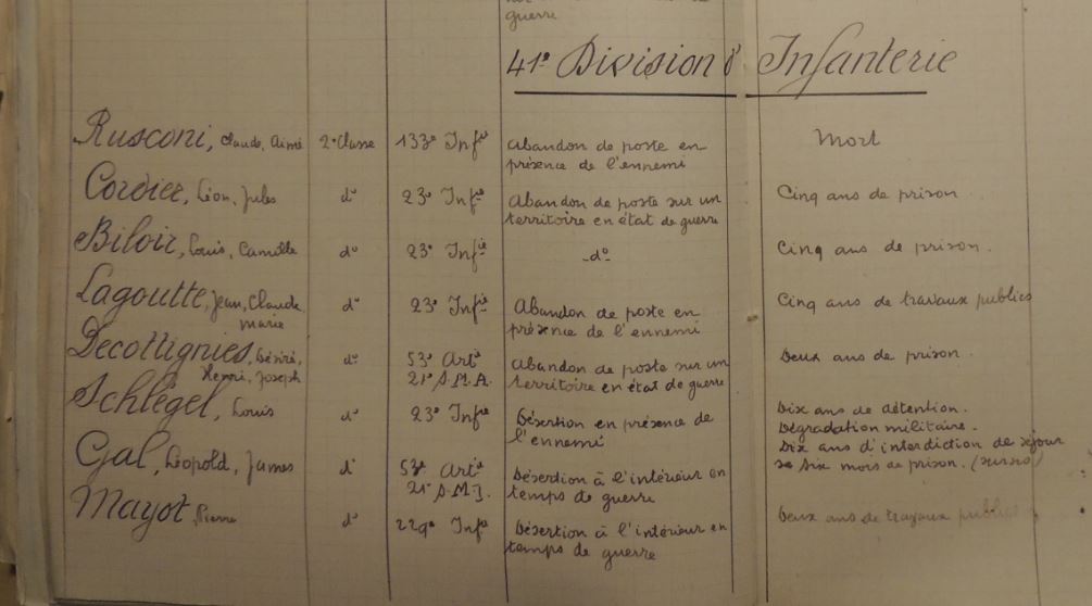 Ainsi alors qu’on sait qu’une partie des jugements de divisions ont disparu comme la 71e, la 41e ou la 47e DI, on trouve des éléments mais il faut fouiller, sortir beaucoup de cartons.