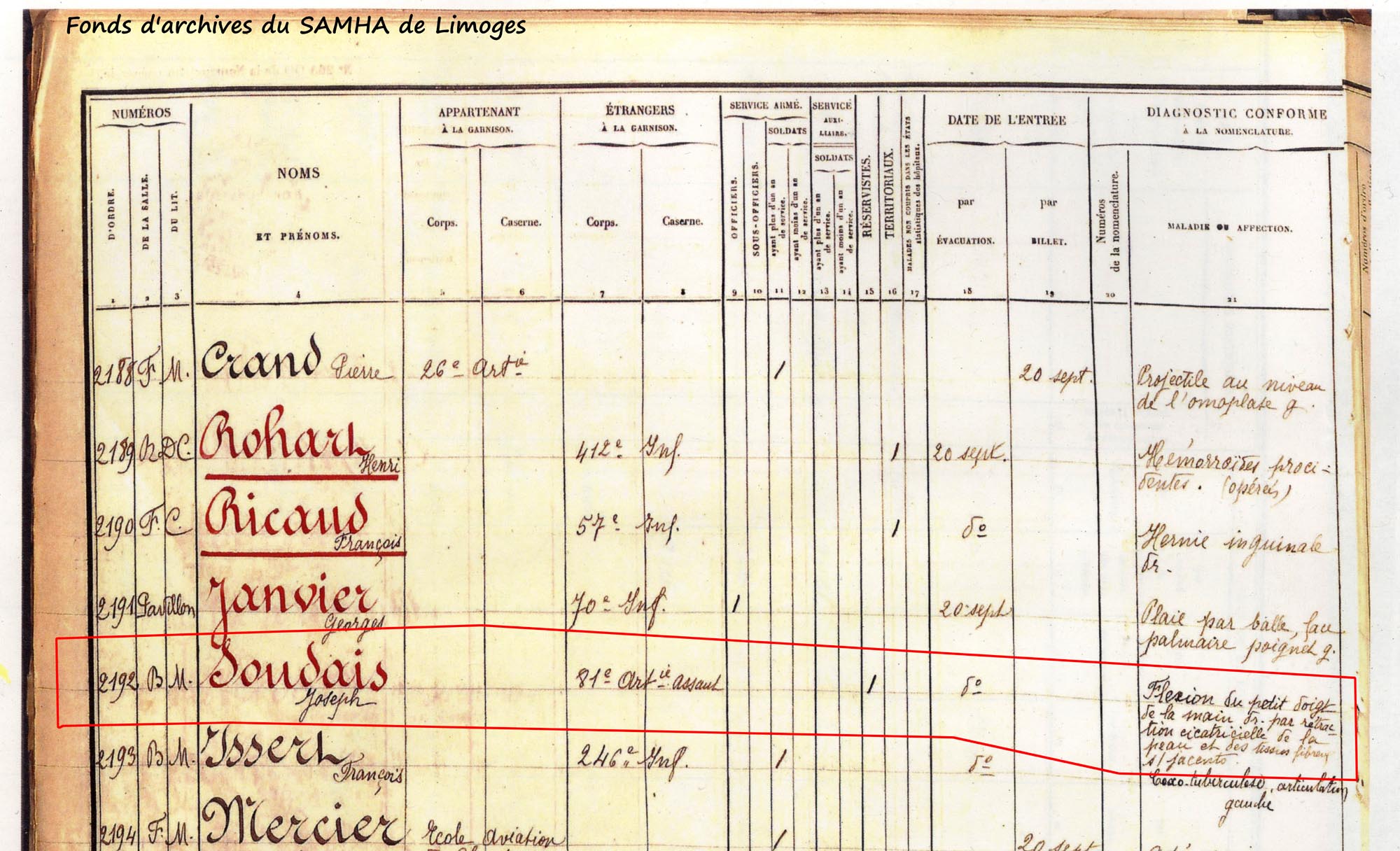 La demande de dossier médical de Joseph Soudais vient de partir aux Archives Hospitalières Militaires de Limoges
