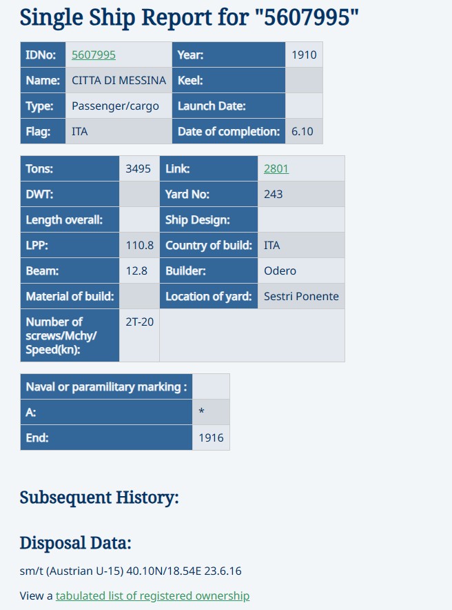 [Circulaire du 25 avril 1922 établissant la Liste des bâtiments et formations ayant acquis, du 3 août 1914 au 24 octobre 1919, le bénéfice du double en sus de la durée du service effectif (Loi du 16 avril 1920, art. 10, 12, 13.), §. A. Bâtiments de guerre et de commerce. : Bull. off. Marine 1922, n° 14, p. 720 et 742.]